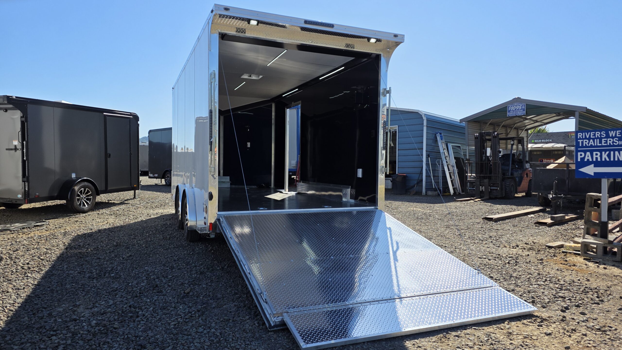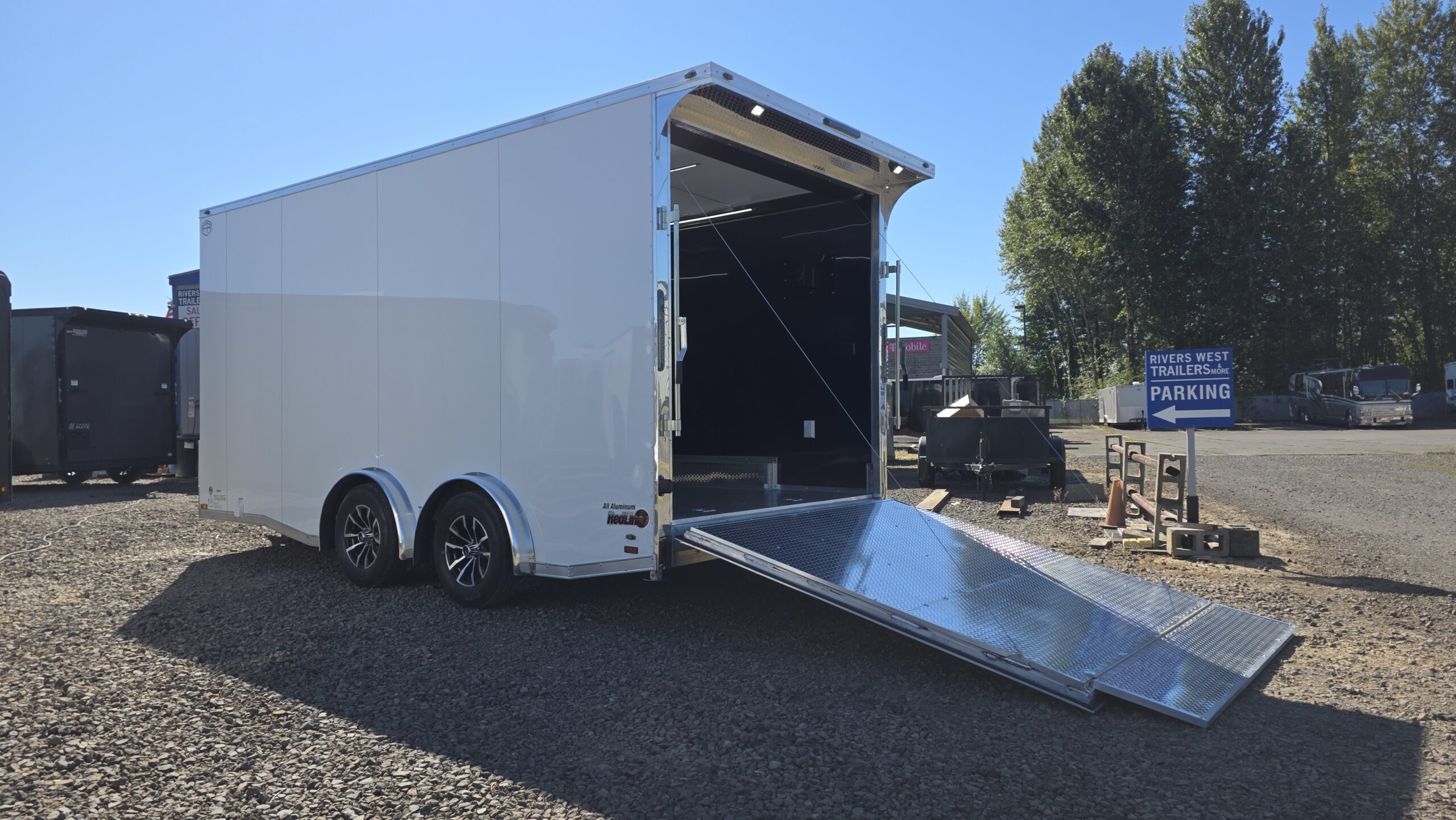 Rivers West Trailers offers the best locally made enclosed cargo trailers by Cargo Mate, manufactured in Silverton, Oregon. We have the largest inventory of available Cargo Mate Cargo Trailers in the Pacific Northwest. If we do not have it, we can build it! We are a family owned and operated business. For more information on our products please contact us by phone: 3602258001 or by email: riverswesttrailersandmore@yahoo.com