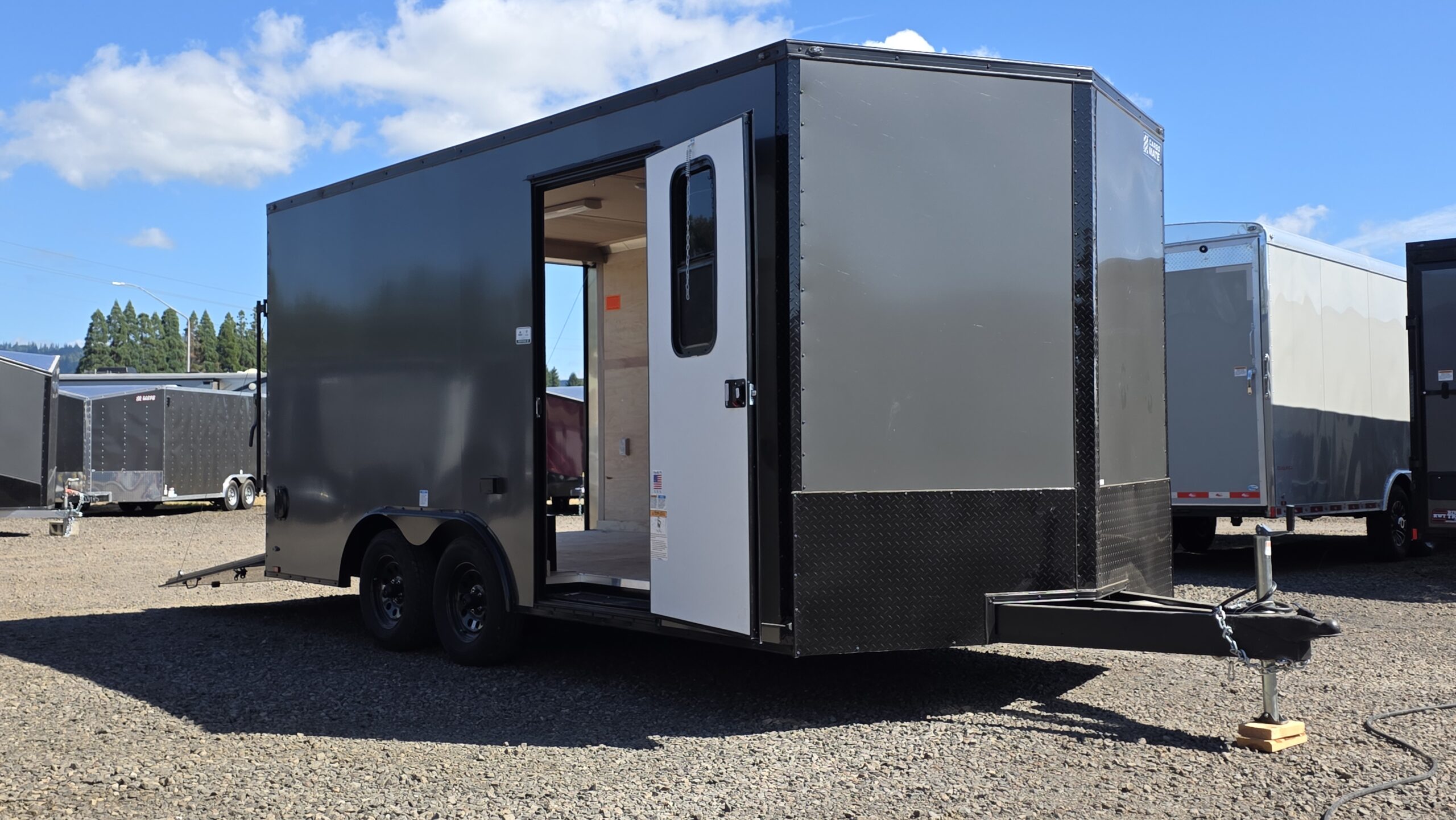 Rivers West Trailers offers the best locally made enclosed cargo trailers by Cargo Mate, manufactured in Silverton, Oregon. We have the largest inventory of available Cargo Mate Cargo Trailers in the Pacific Northwest. If we do not have it, we can build it! We are a family owned and operated business. For more information on our products please contact us by phone: 3602258001 or by email: riverswesttrailersandmore@yahoo.com